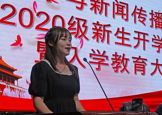 接着分别由老生代表秘书1182班桂千曦、新生代表汉语言文学1205班杨诗琪两位同学发言。桂千曦同学总结自己在海大中所学习到的经验:坚定理想信念,争做有理想的奋斗新青年;培养过硬的本领,提高综合素质;强身健体,让运动成为习惯;热爱生活,向美而行。并表达了自己对新生们的期望,鼓励新生们在接下来的大学生活中锻炼自己。杨诗琪同学则选择从诉说自己在疫情中所受到的阻力入手,倡议作为大一新生的同学们,应有着明确的奋斗目标,秉承并践行海大“广学明德,海纳厚为”的校训。她由衷地祝贺一同进入海大的文传学子,同他们一起展望未来。