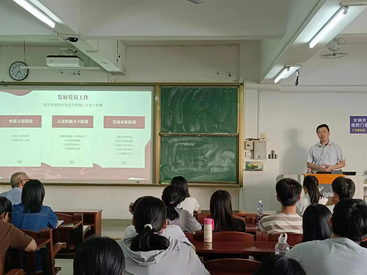 胡墨在开场白中说,此次培训讲座体现了学校组织部门对学院党建工作的关心和支持,有助于学院党务工作者更加熟悉党务工作内容,有助于学院落实党务工作的严谨化规范化要求。王兴龙做了主题为“加强党支部规范建设,打造坚强战斗堡垒”的培训讲座。作为具有丰富实操经验的业务骨干,他聚焦工作难点问题,从发展党员工作、“三会一课”和主题党日、党员的教育管理和会议记录四个方面展开严谨细致的讲解,强调发展党员工作要遵循总要求和方针,把政治标准放在首位,并结合实际案例,重点对工作流程及注意事项进行了讲解和说明。