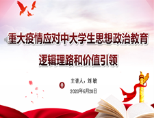 刘敏的发言以《重大疫情应对中大学生思想政治教育逻辑理路和价值引领》为题,阐述了因事而化、因时而进、因势而新的思政工作理念,从“加强大学生爱党爱国主义教育,增强 ‘四个自信’”;“加强心理疏导,突出人文关怀”;“加强生命教育,引导大学生培育理性思维”等三个方面对疫情期间的价值引领工作进行了梳理总结。